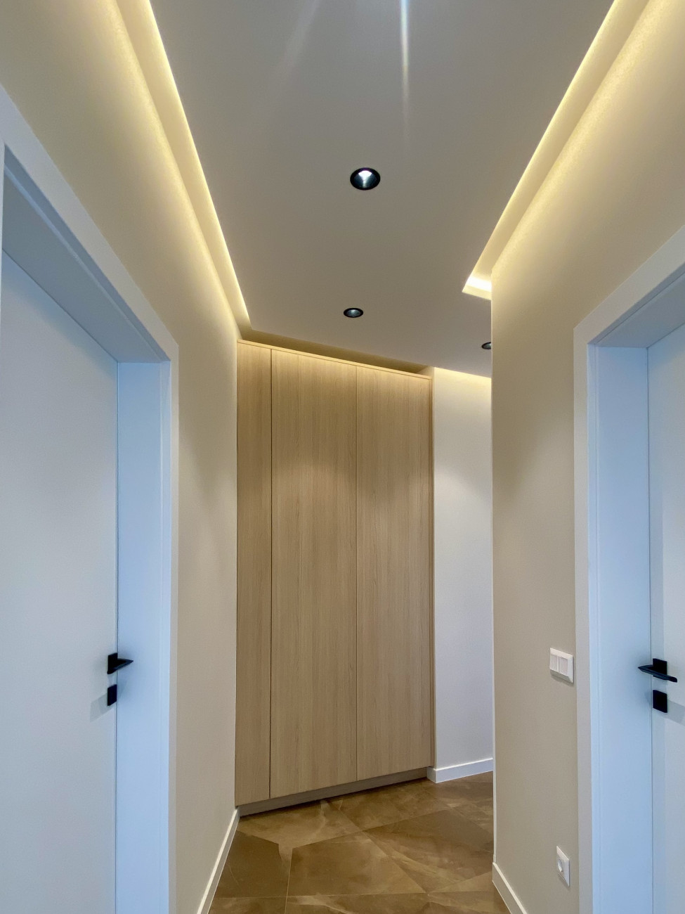 Изпълнихме дизайнерски тавани от гипсокартон с вградени LED ленти и линейно осветление, които подчертават архитектурата на помещенията и създават усещане за дълбочина и стил.