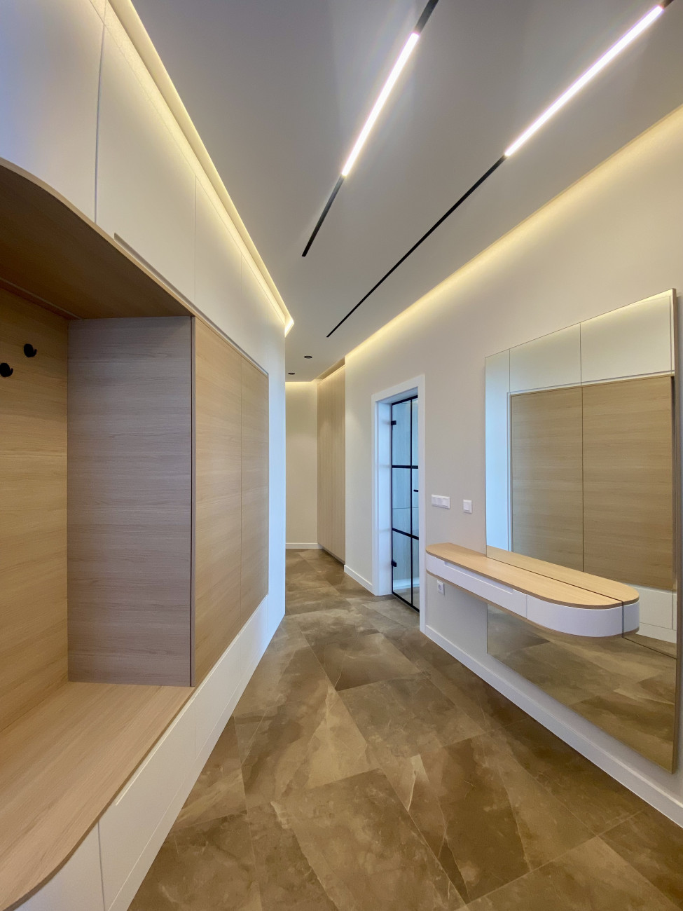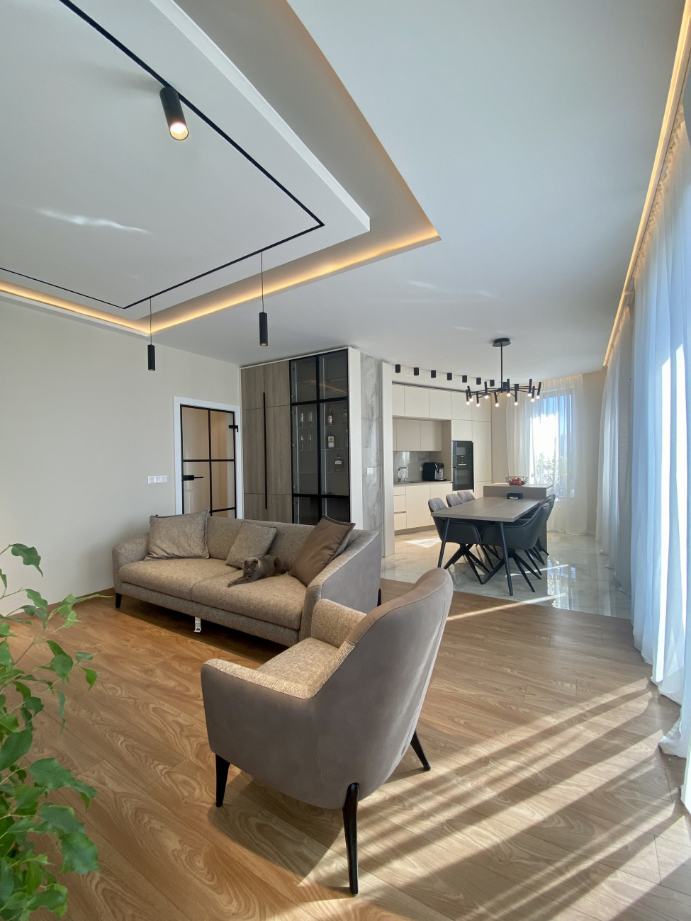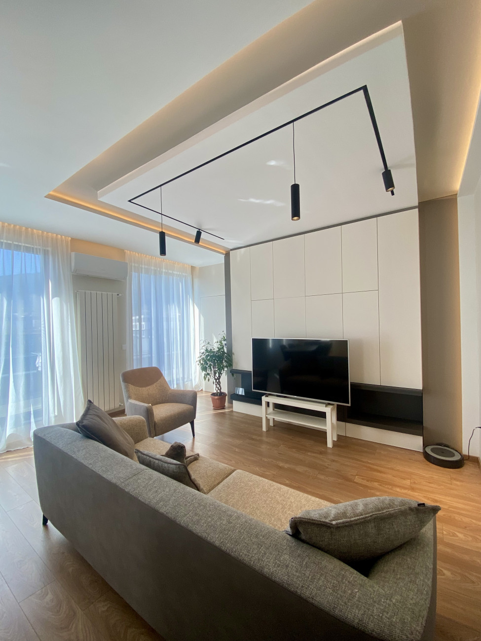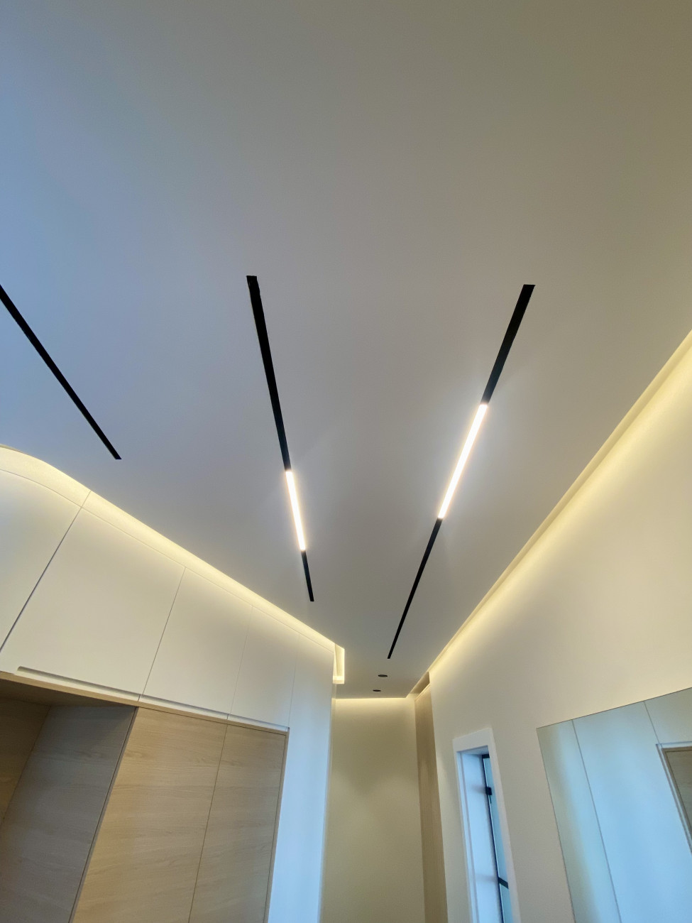 Изпълнихме дизайнерски тавани от гипсокартон с вградени LED ленти и линейно осветление, които подчертават архитектурата на помещенията и създават усещане за дълбочина и стил.