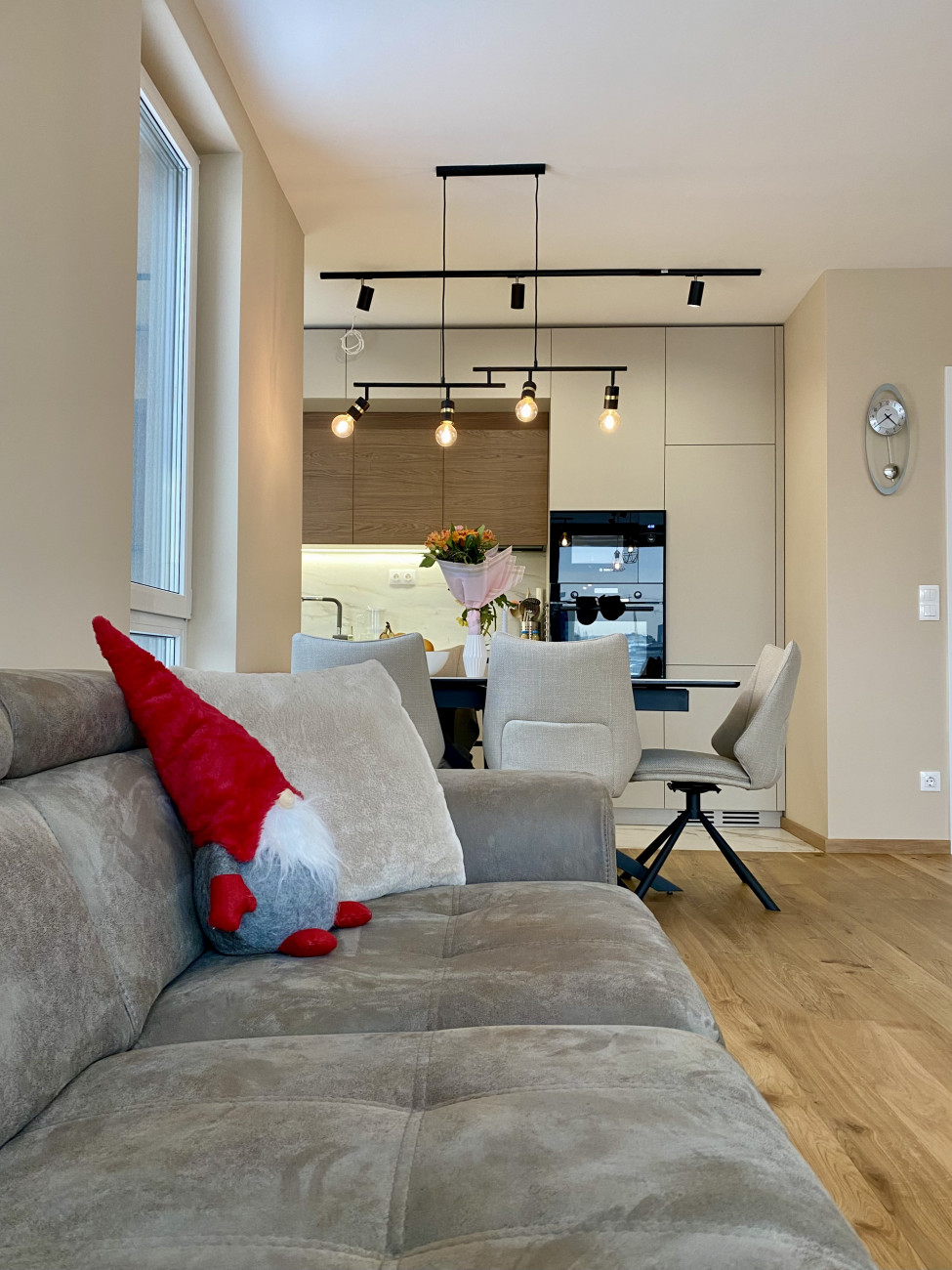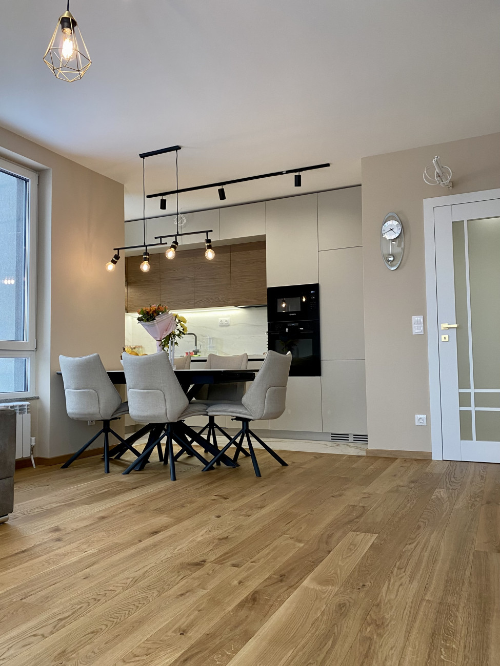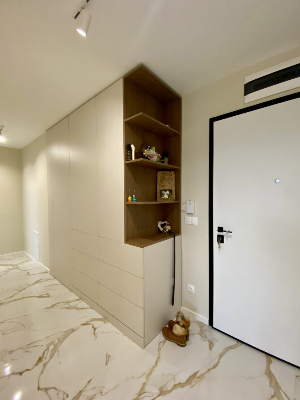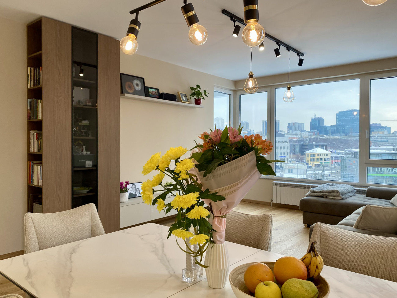 Цялостната визия на апартамента носи усещане за модерен семеен дом – балансиран, стилен и удобен за ежедневието. Всеки детайл е изпълнен с прецизност и внимание, защото вярваме, че качествените довършителни ремонти не просто променят пространството, а създават среда за живот.