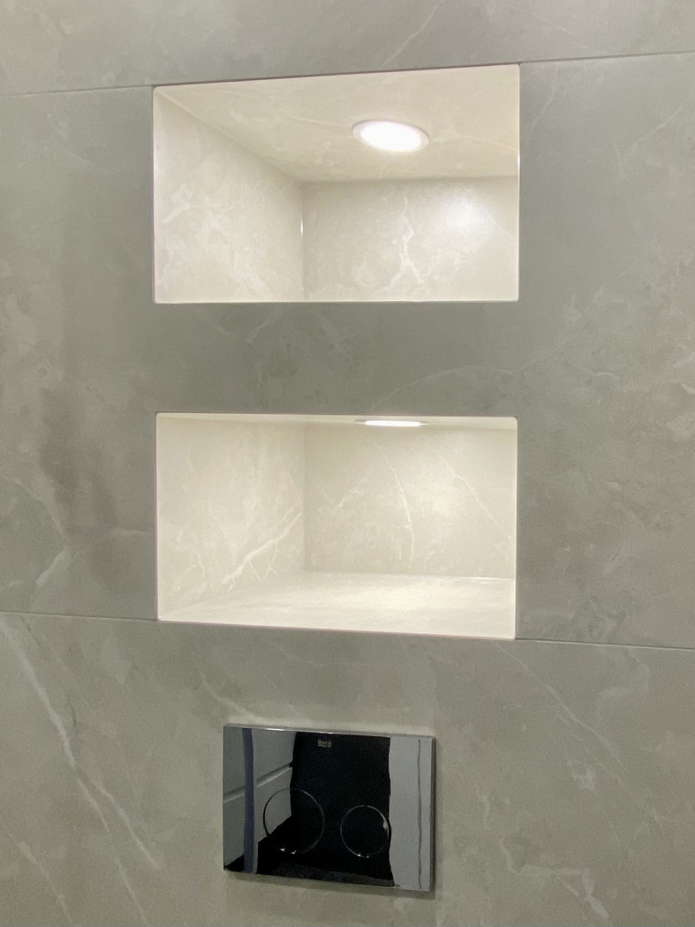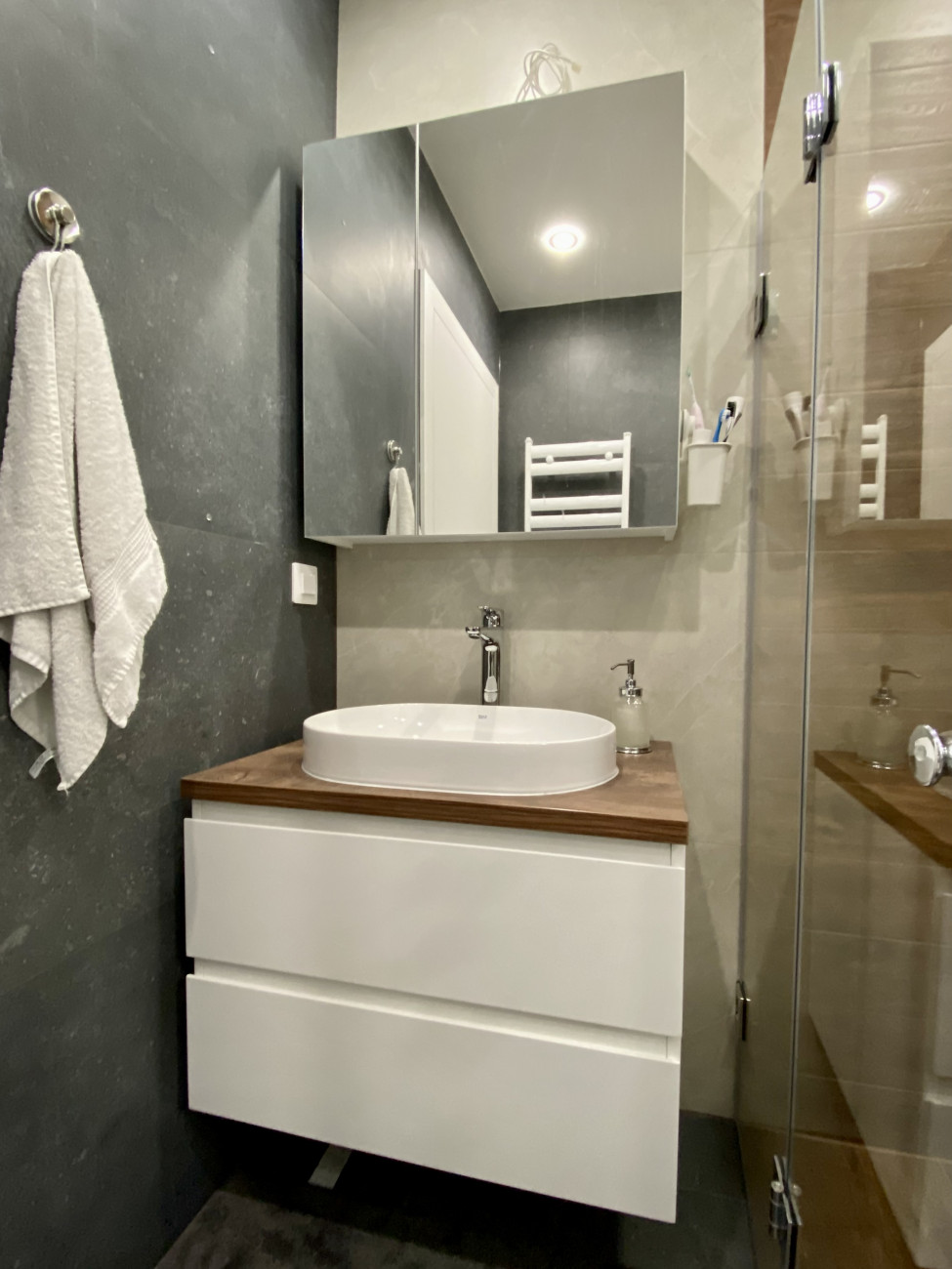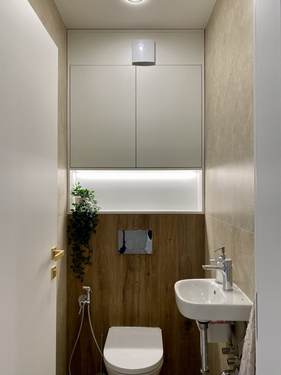 Особено внимание отделихме на банята и тоалетната – ключови пространства, където комфортът и дизайнът трябва да вървят ръка за ръка. Тук приложихме съвременни решения и детайлна изработка, за да създадем модерна атмосфера, която е едновременно практична и естетически издържана.