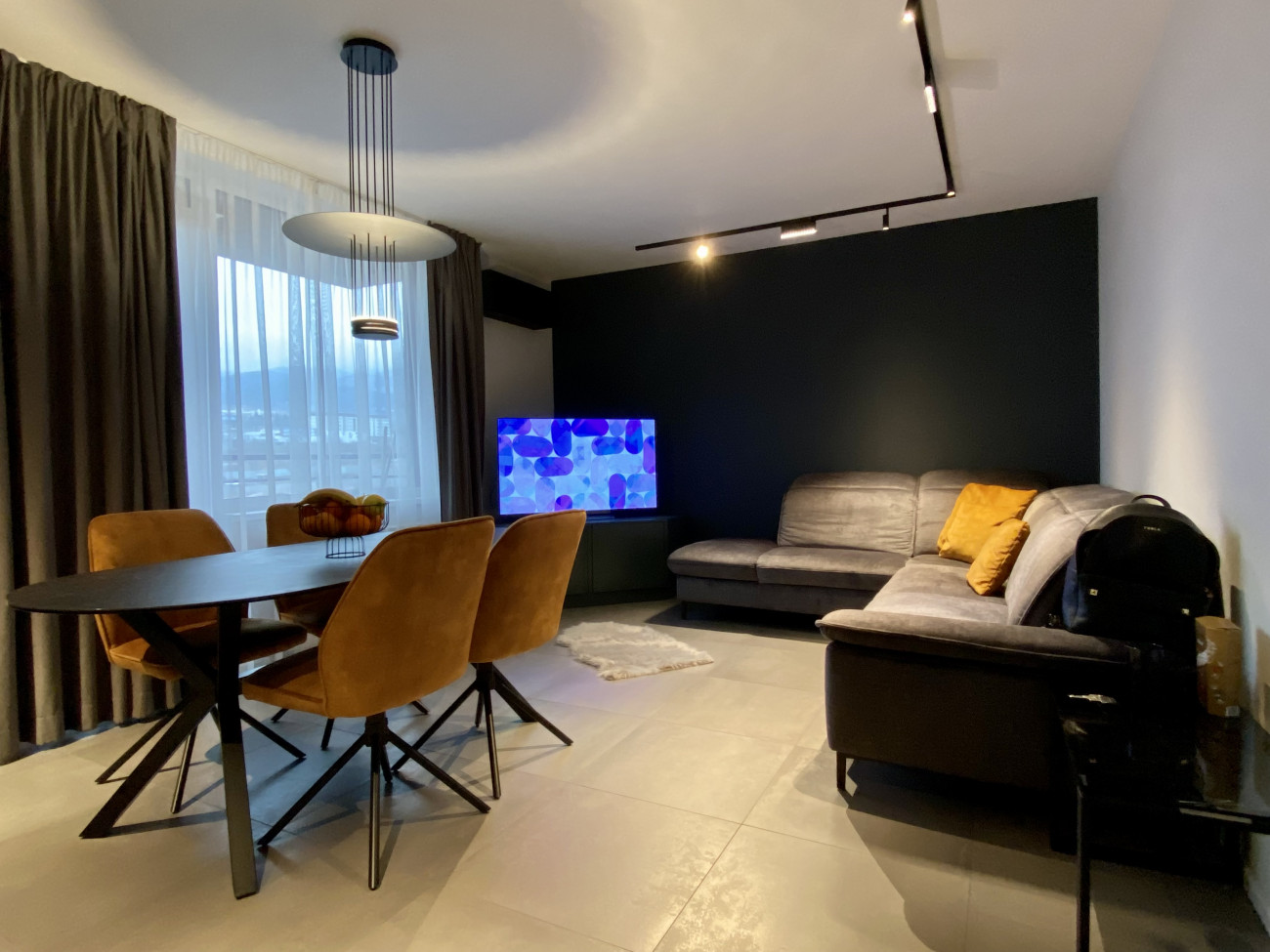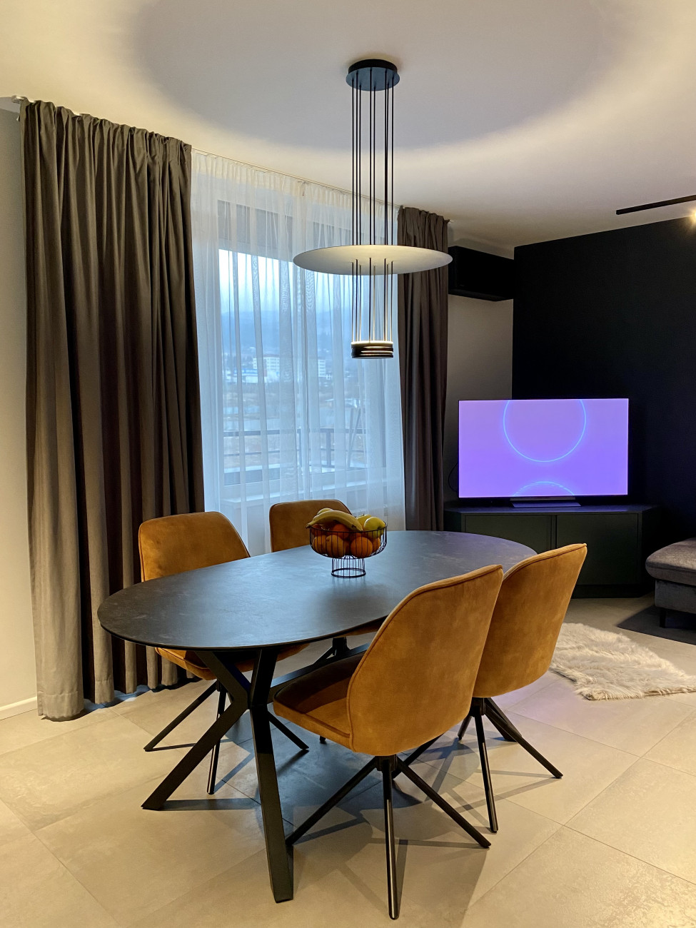 Този апартамент е пример за успешно съчетание на съвременен дизайн и практични решения. От дневната до банята, всяко пространство е внимателно планирано и изпълнено, за да осигури максимален комфорт и естетика.