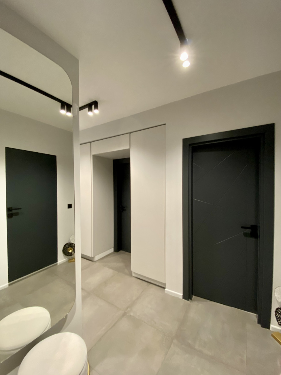 Всеки елемент от този проект е внимателно подбран и изпълнен с фокус върху детайлите, като крайният резултат е апартамент, който съчетава стил и практичност по един съвременен и елегантен начин.